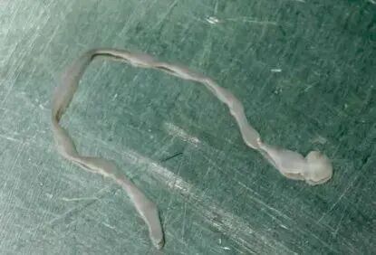 从丽姨脑袋里抓出来的活虫,已有约8cm长